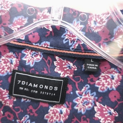 7 DIAMONDS Shirt "Let Love Rule" Contrasting Floral Trim 100% Cotton LARGE