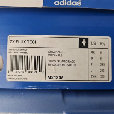 ADIDAS ZX FLUX TECH M21305 Originals Running Training Sneakers Silver Supcol 6.5