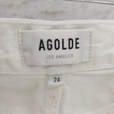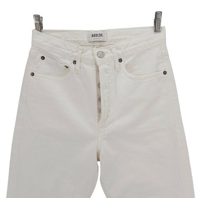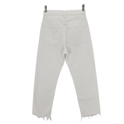 AGOLDE 90s Crop High Rise White Denim Jeans Frayed Hem Distressed Size 24