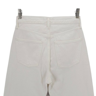 AGOLDE WHITE 100% COTTON DENIM 90S HIGH RISE CROP FRAYED HEM JEANS