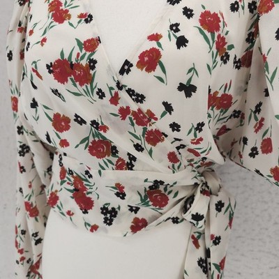 ALC Floral Wrap Blouse Top 100% Silk Colorful EUC Size 6