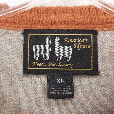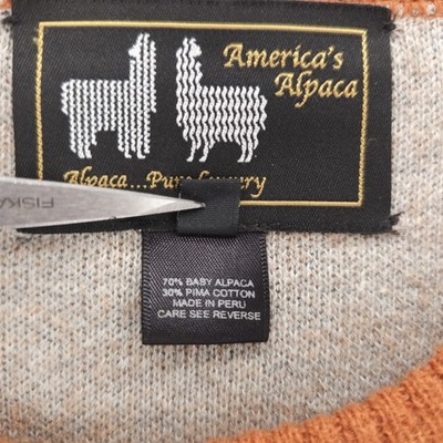 AMERICA'S ALPACA Orange Sweater Baby Alpaca Pima Cotton Thick Pullover Men's XL