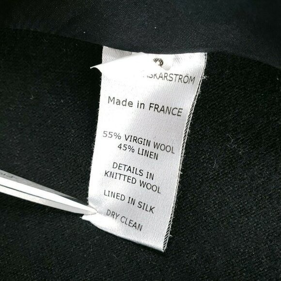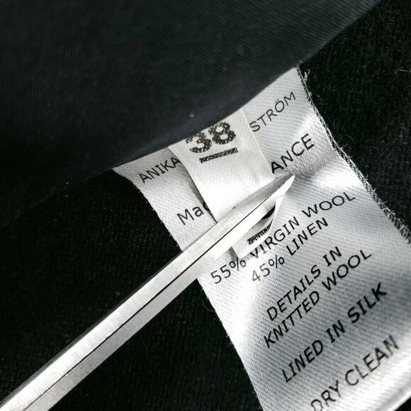 ANIKA LENA SKARSTROM Paris Black Wool Linen Coat Jacket Knit Details Size 38