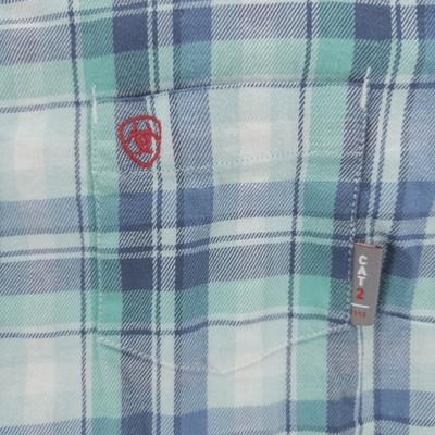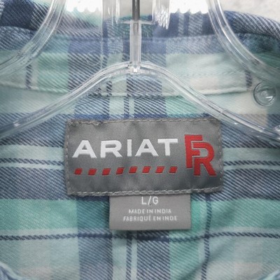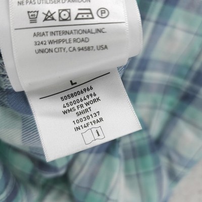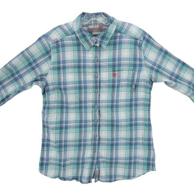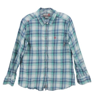 ARIAT FR Women's Blue Green Plaid LS Work Shirt Cotton Blend EUC Size LARGE