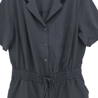 ATHLETA Black Avenue Romper Short Sleeve Collared Stretch Size MEDIUM