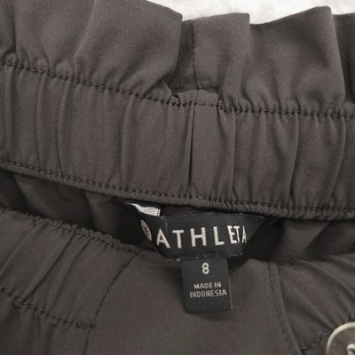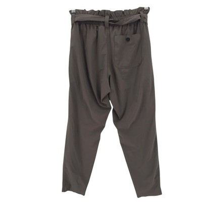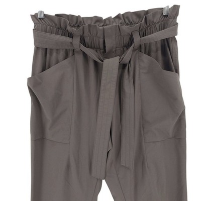 ATHLETA Skyline Paper Bag Waist Pants Olive Gray Belted 292915-03 Size 8