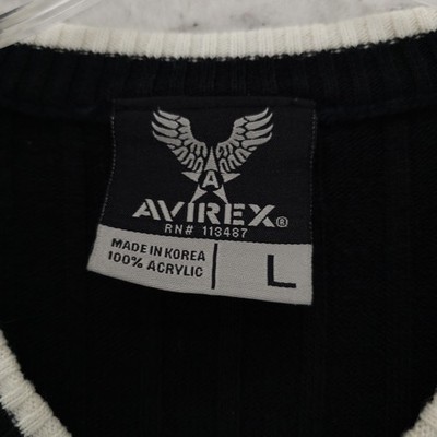 AVIREX Sweater Vest Black Knit White Embroidered Logo Y2K 90s Men's LARGE