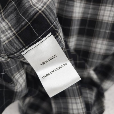BILLY REID Black Gray Check Plaid 100% Linen Shirt Long Sleeve EUC Size XS