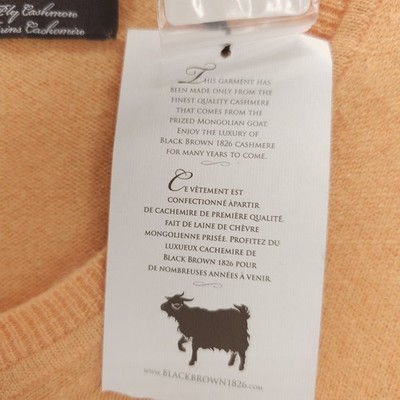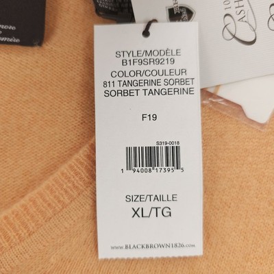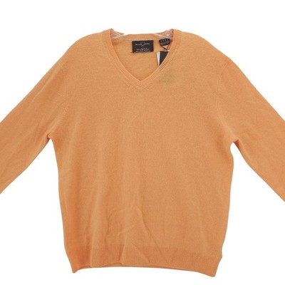 BLACK BROWN 1826 100% 2-Ply Cashmere V-Neck Sweater Tangerine Sorbet Size XL