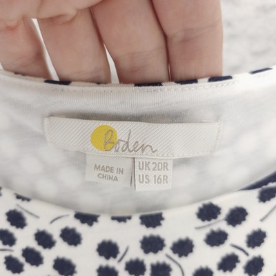 BODEN Midi Dress Sleeveless Navy White Floral Tencel Cotton Size US 16R