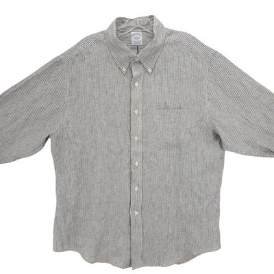 BROOKS BROTHERS 100% Irish Linen Long Sleeve Shirt Striped Slim Fit XL