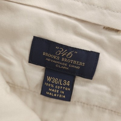 BROOKS BROTHERS Advantage Chino Pants Clark Fit 100% Cotton Khaki Tan Size 36x34