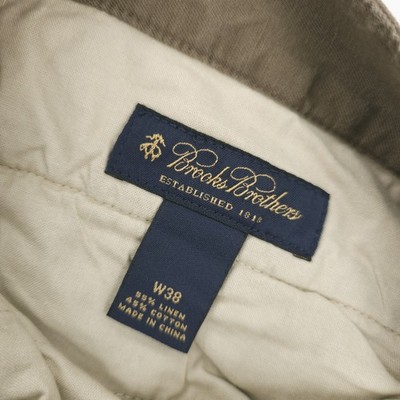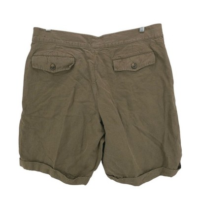 BROOKS BROTHERS Olive Green Linen Cotton Shorts Adjustable Waist Cuffed Size 38