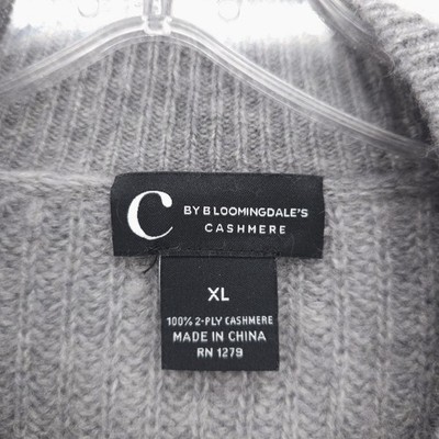 C BY BLOOMINGDALES Women's Gray Cashmere High Neck Pullover Loose Chunky Knit XL