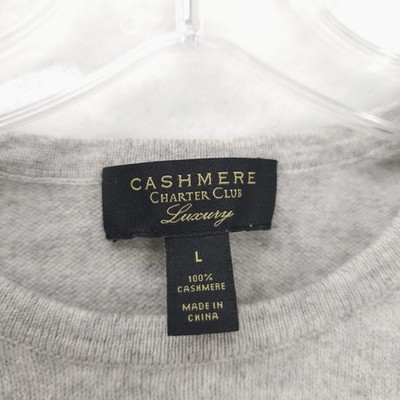 CHARTER CLUB Luxury 100% Cashmere Sweater Light Gray Heather Women's LARGE
