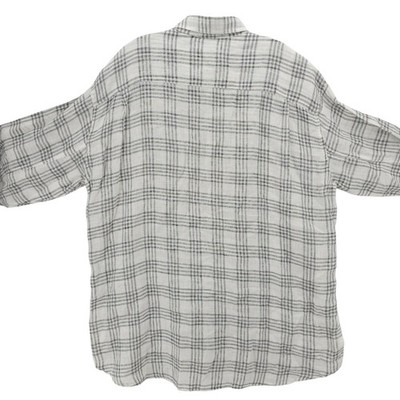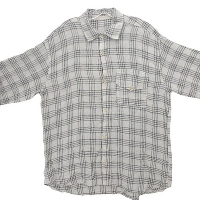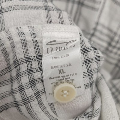 CP SHADES Men's 100% Linen Shirt Long Sleeve White Black Plaid EUC Size LARGE