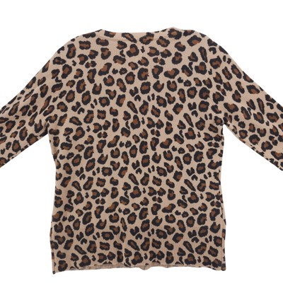 CYNTHIA ROWLEY 100% 2-Ply Cashmere Sweater Animal Print Brown Tan MEDIUM