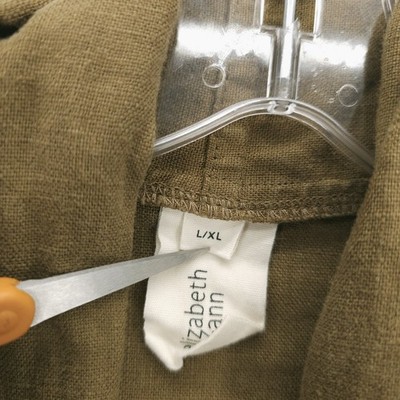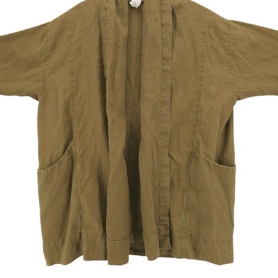 ELIZABETH SUZANN Olive Clyde Jacket 100% Linen Midweight Relaxed Open Front L/XL