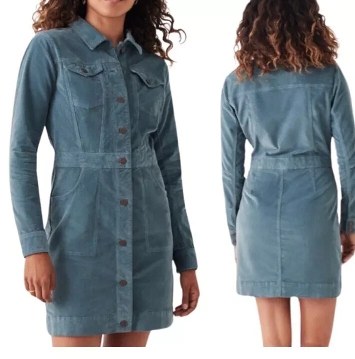 FAHERTY BLUE "MICHELLE" CORDUROY MINI SHIRT DRESS - RUNS SMALL