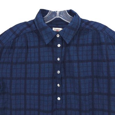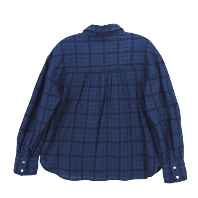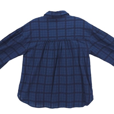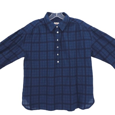 FAHERTY Ollie Top Blue Indigo Windowpane Popover Shirt Organic Cotton Women's XS