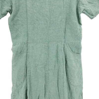 FLAX 100% Linen Midi Dress Green Woven Lagenlook Pockets Button Detail Sz PETITE