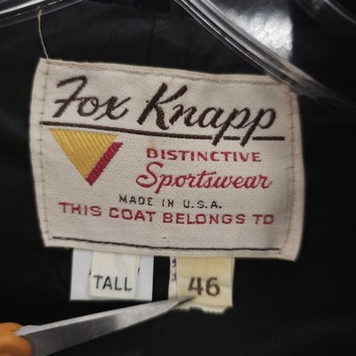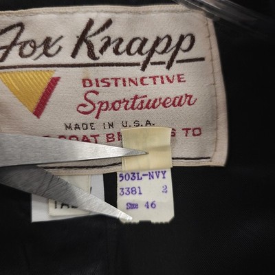 FOX KNAPP Vintage Pea Coat Double Breasted Navy Blue Union Made in USA 46 TALL
