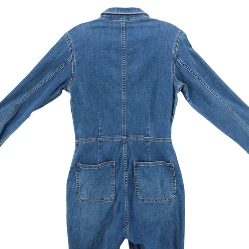 FREE PEOPLE Lennox Denim Jumpsuit Coverall Zip Up Stretch Pockets Size SMALL