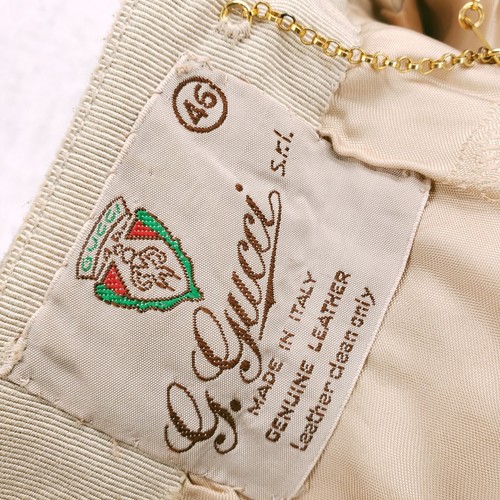 GUCCI 70s Vintage Leather Leather Pencil Skirt Beige Size 46 - SMALL?