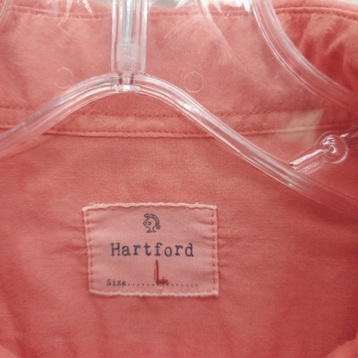 HARTFORD Long Sleeve 100% Cotton Lightweight Shirt Salmon Pink Size LARGE