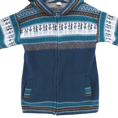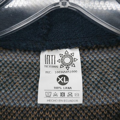 Inti Tejidos Sweater 100% Wool Hooded Zip Up Llama Pattern Ecuador Men's XL