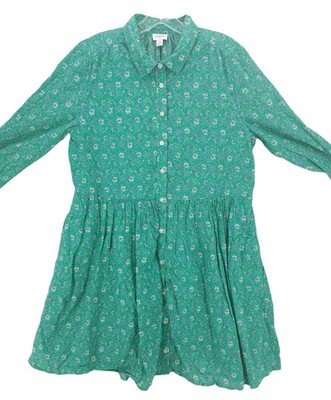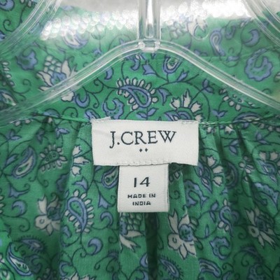 J CREW Factory Shirt Dress Long Sleeve Green Paisley Floral 100% Cotton Size 14