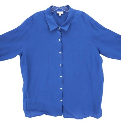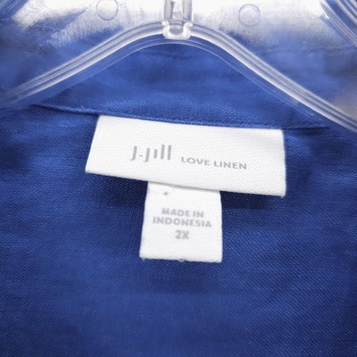 J JILL Blue 100% Linen Long Sleeve Button Up Shirt EUC Size 2X