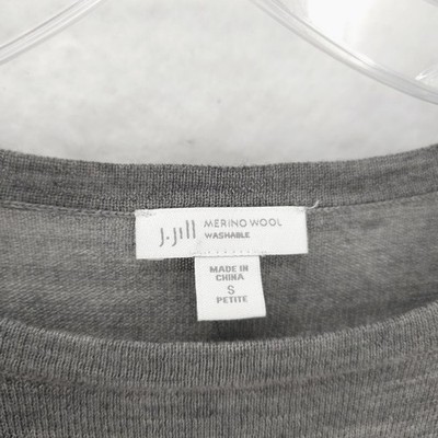 J JILL Gray Washable 100% Merino Wool Sweater Dropped Shoulder PETITE SMALL