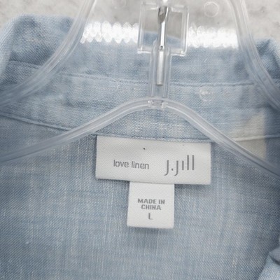J JILL Light Blue 100% Linen Long Sleeve Button Up Shirt Size LARGE