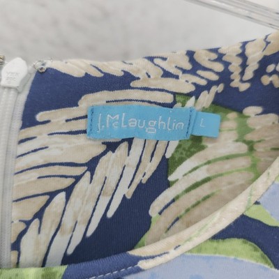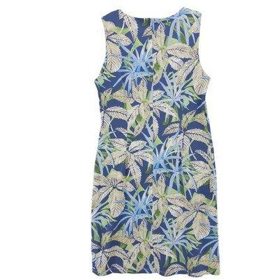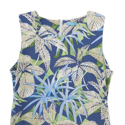 J. McLaughlin Sleeveless Dress Stretch Catalina Cloth Blue Green Leaf LARGE