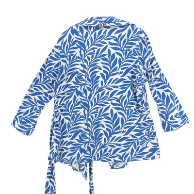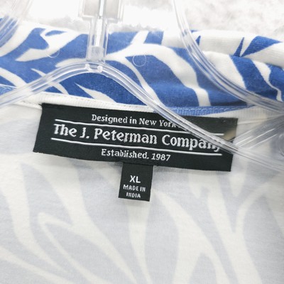 J. PETERMAN Transformative Wrap Top Blouse Blue White Leaf Print Stretch Tie XL