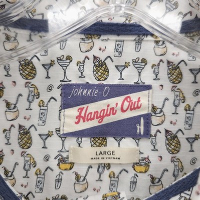 JOHNNIE-O Hangin Out Barkley Button Down Shirt Tropical Drink Pattern EUC LARGE