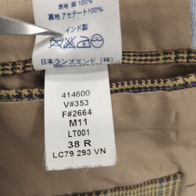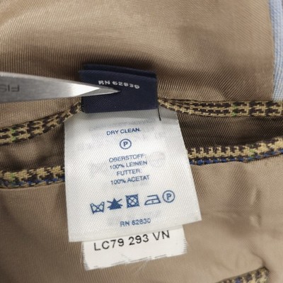 LANDS' END Baird McNutt Irish Linen Blazer Jacket Houndstooth Glen Plaid 38R