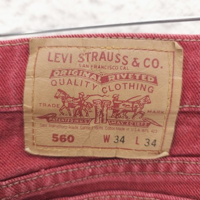 LEVI’S 560 Jeans MADE IN USA Red Denim 100% Cotton Tapered Size 34x34