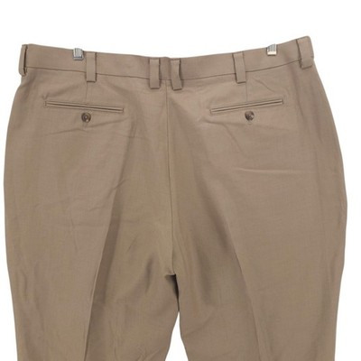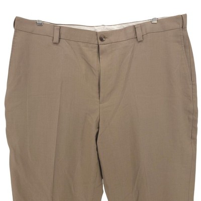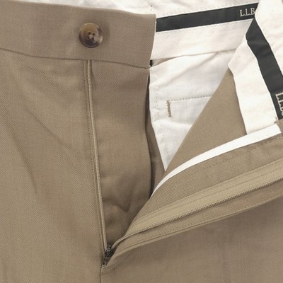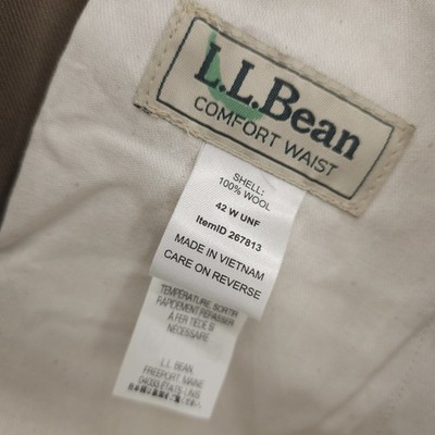 LL BEAN Chino Dress Pants 100% Wool Flat Front Comfort Waist Khaki Size 42x33