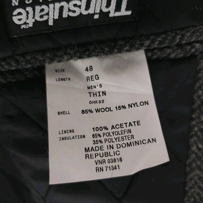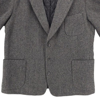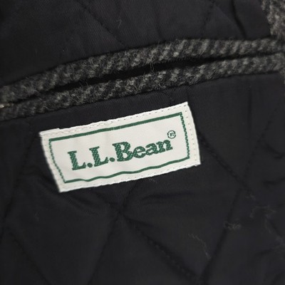 LL BEAN Gray Herringbone Wool Blend Coat Jacket Thinsulate Size 48R
