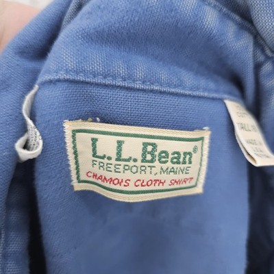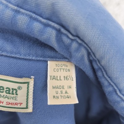 LL BEAN Vintage MADE IN USA Blue Chamois Shirt Long Sleeve Men's 16.5 TALL