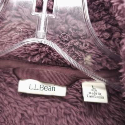 LL BEAN Women's Hi Pile Fleece Jacket Full Zip Maroon Purple Size LARGE