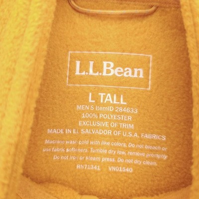 LL BEAN Yellow 1/4 Snap Fleece Pullover Sweater Pockets Men's LARGE TALL LT