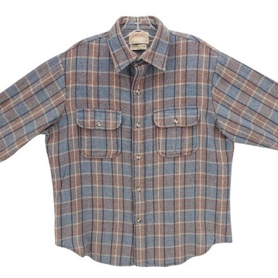 LORD JEFF Vintage Shirt Elbow Patch Brown Blue Plaid MADE IN USA Size MEDIUM