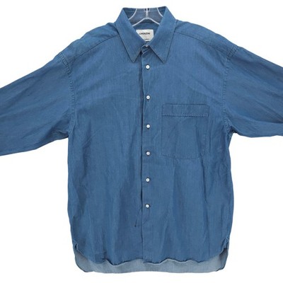 LORENZINI Blue Chambray Long Sleeve Shirt MADE IN ITALY 100% Cotton MEDIUM