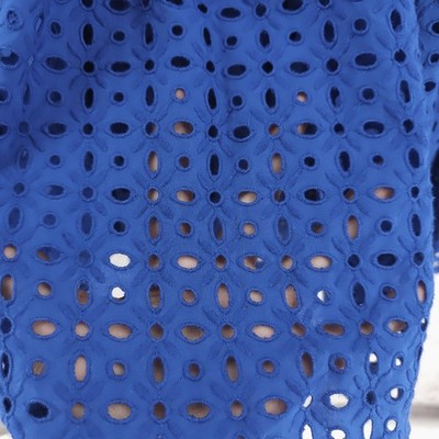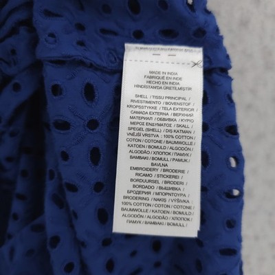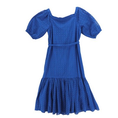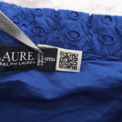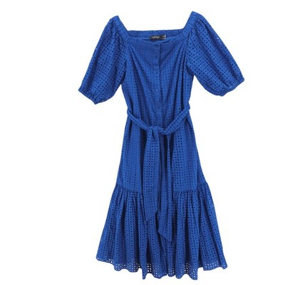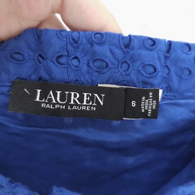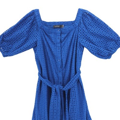 LRL Ralph Lauren Eyelet Cotton Off the Shoulder Dress Blue Tiered Belted Size 6