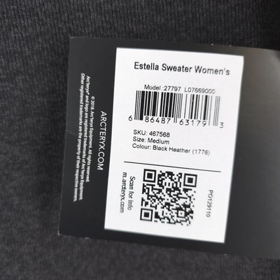 NWT ARC'TERYX Estella Sweater Women's Mock Neck Black Heather Relaxed Fit MEDIUM