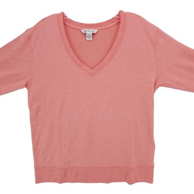 NWT ATHLETA Sunrise V-Neck Sweatshirt Coral Orange Heather Thumbholes MEDIUM