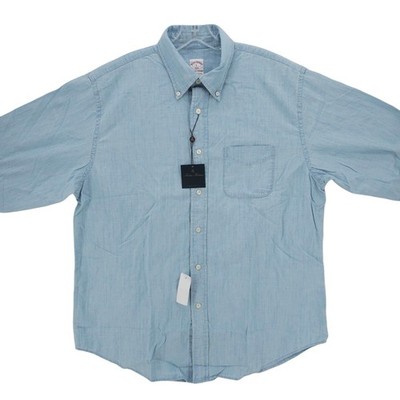 NWT BROOKS BROTHERS Chambray Shirt Traditional Fit 100% Cotton Light Blue LARGE